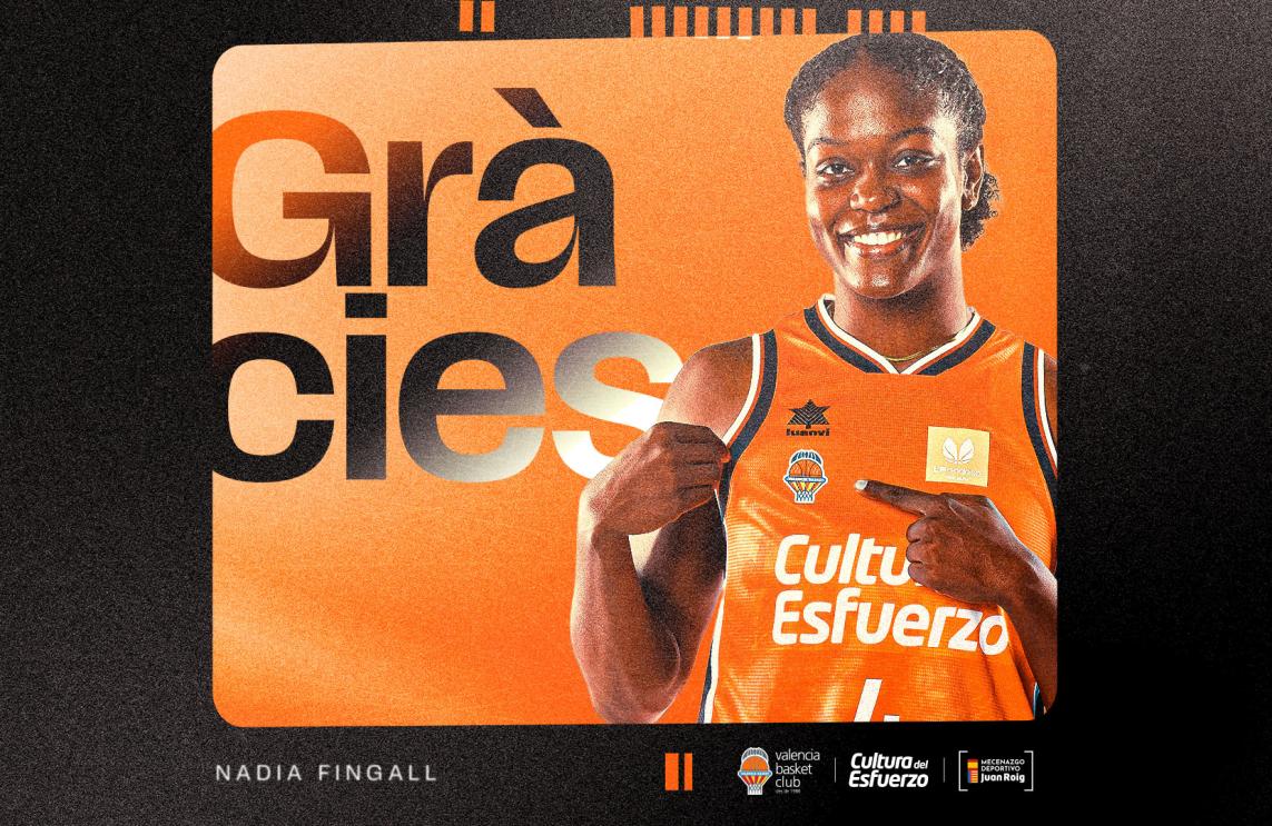 Valencia Basket quiere agradecer Nadia Fingall su trabajo, dedicación y profesionalidad durante los dos años en los que ha formado parte del Club, etapa que ahora termina tras finalizar su contrato. La jugadora norteamericana ha sido una pieza importante en los éxitos logrados por el equipo estas dos temporadas y se marcha dejando una huella imborrable en la Familia Taronja.