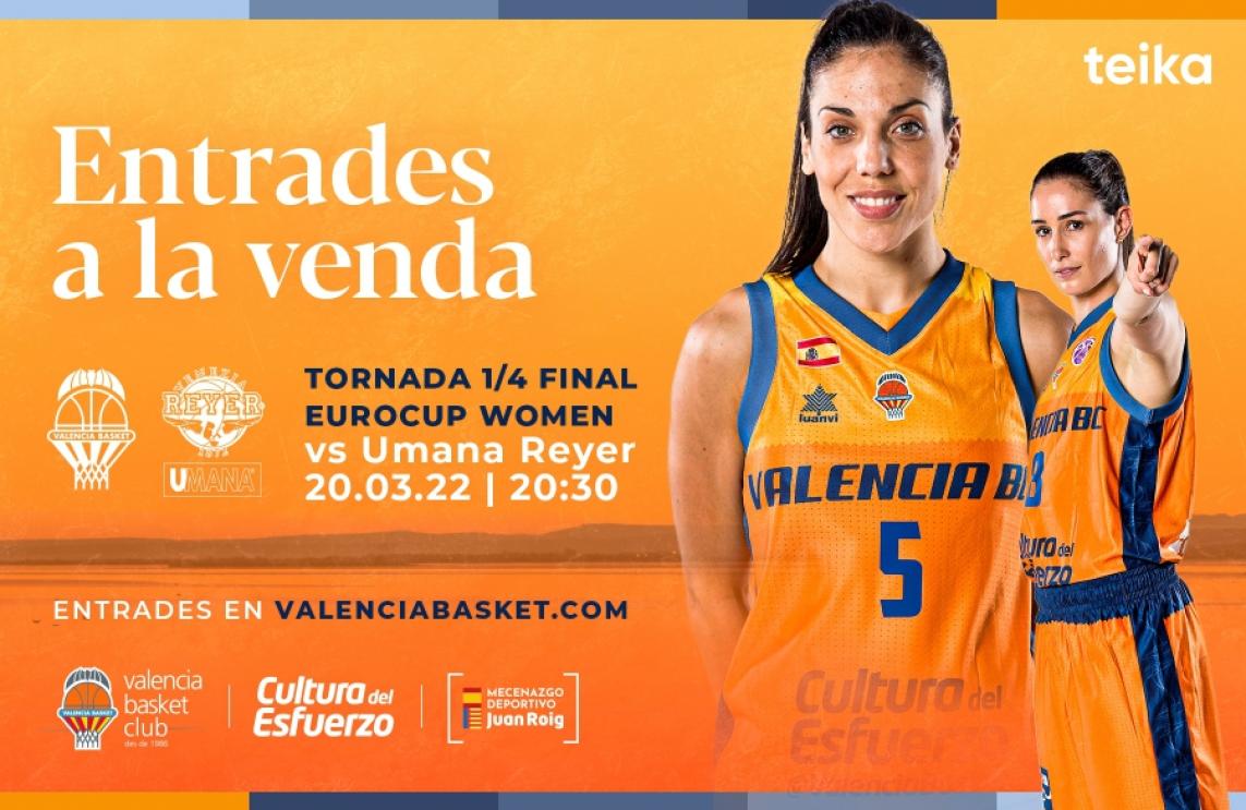 La tornada dels quarts de final de l'Eurocup Women davant Umana Reyer Venezia s'uneix a tota l'oferta de partits disponibles d'aquest mes de març que ja tenen entrades a la venda en la web oficial del Club. Les xiques de Rubén Burgos, que disputen l'anada en terres italianes dimarts que ve 15, tractaran d'assegurar el passe a la Final Four a casa davant el mateix rival al qual es van enfrontar quan van alçar a Hongria el primer títol de la seua història. La passada es dirimirà a la Fonteta diumenge que ve 20 a les 20:30h amb el segon envit de l'eliminatòria. Amb aforament del 100% permés per les autoritats sanitàries, el partit entra dins de l'abonament global i femení, i ja hi ha entrades disponibles per a tots aquells aficionats que no disposen de passada.