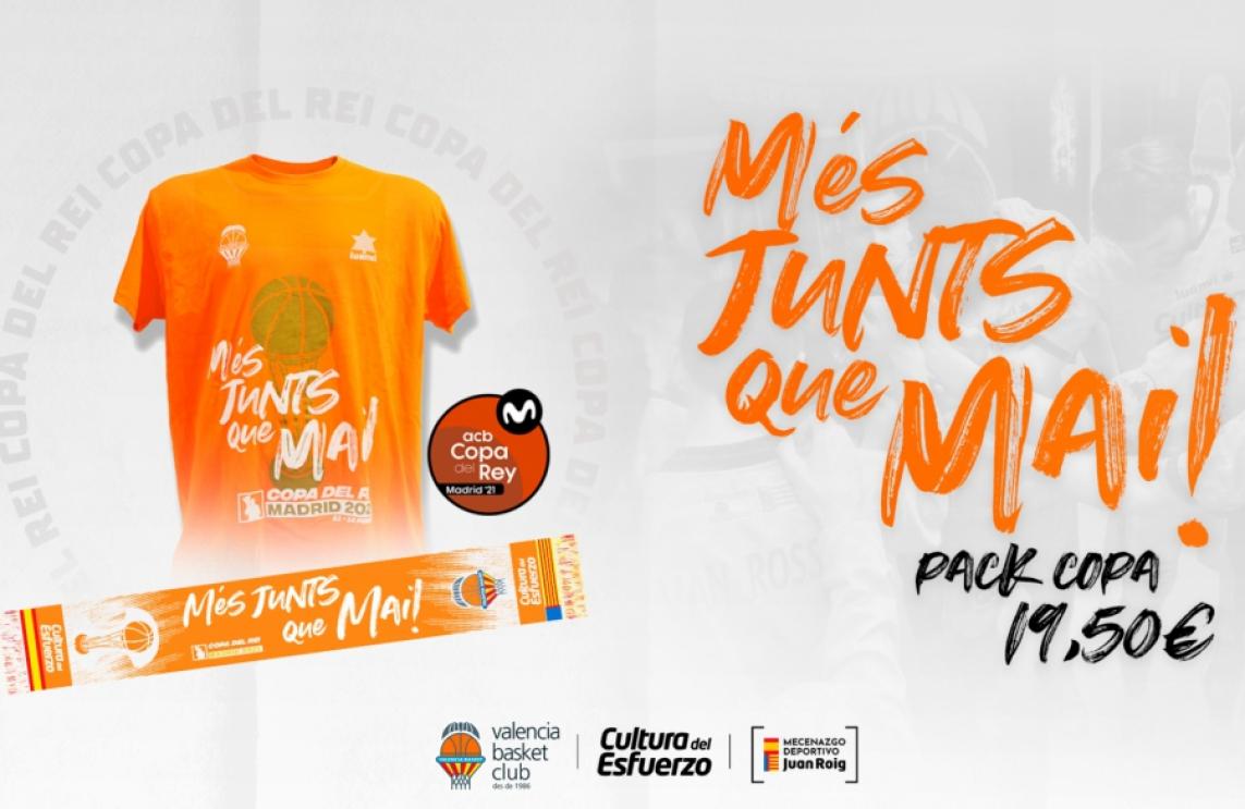Valencia Basket quiere seguir fiel a las tradiciones, y aunque la presencia de aficionados sea complicada para la próxima edición de la Copa del Rey, quiere que sus aficionados puedan tener el pack de merchandising que conmemora la copa del rey de Madrid que nos viene por delante. Se trata de una edición limitada de camiseta y bufanda al precio conjunto de 19,50 euros, que conmemora la cita copera que comenzará el próximo jueves en la capital de España.