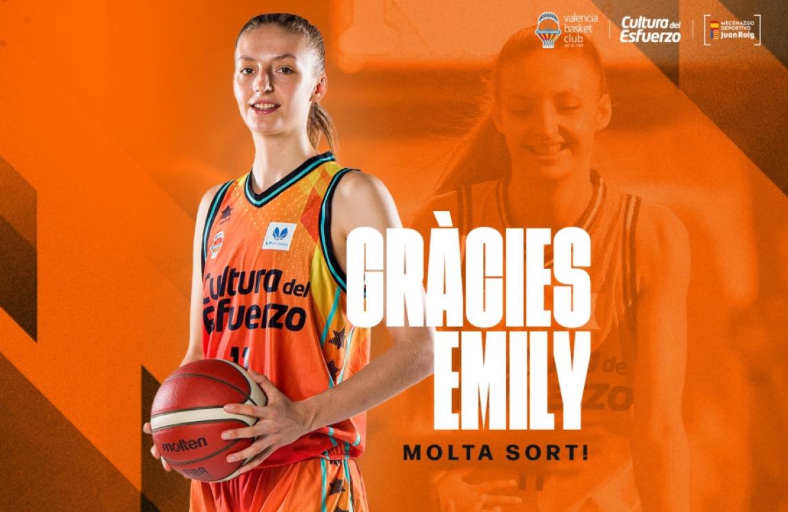 Valencia Basket vol desitjar-li la major de les sorts en els seus pròxims reptes professionals i recordar-li que sempre serà part de la Família Taronja i una de les Campiones de la primera lliga de la història de l'equip femení. Gràcies per tot, Emily!