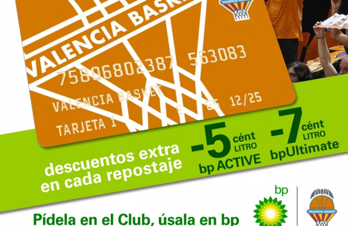 Valencia Basket ha alcanzado un acuerdo con el Grupo bp para lanzar la tarjeta BP Bonus Valencia Basket, una tarjeta identificativa que los abonados y aficionados podrán mostrar en las estaciones de servicio bp para obtener un descuento de 5 céntimos por litro en cada repostaje de gasolina bp ACTIVE y de 7 céntimos por litro si se decantan por llenar su depósito con gasolina bp Ultimate.