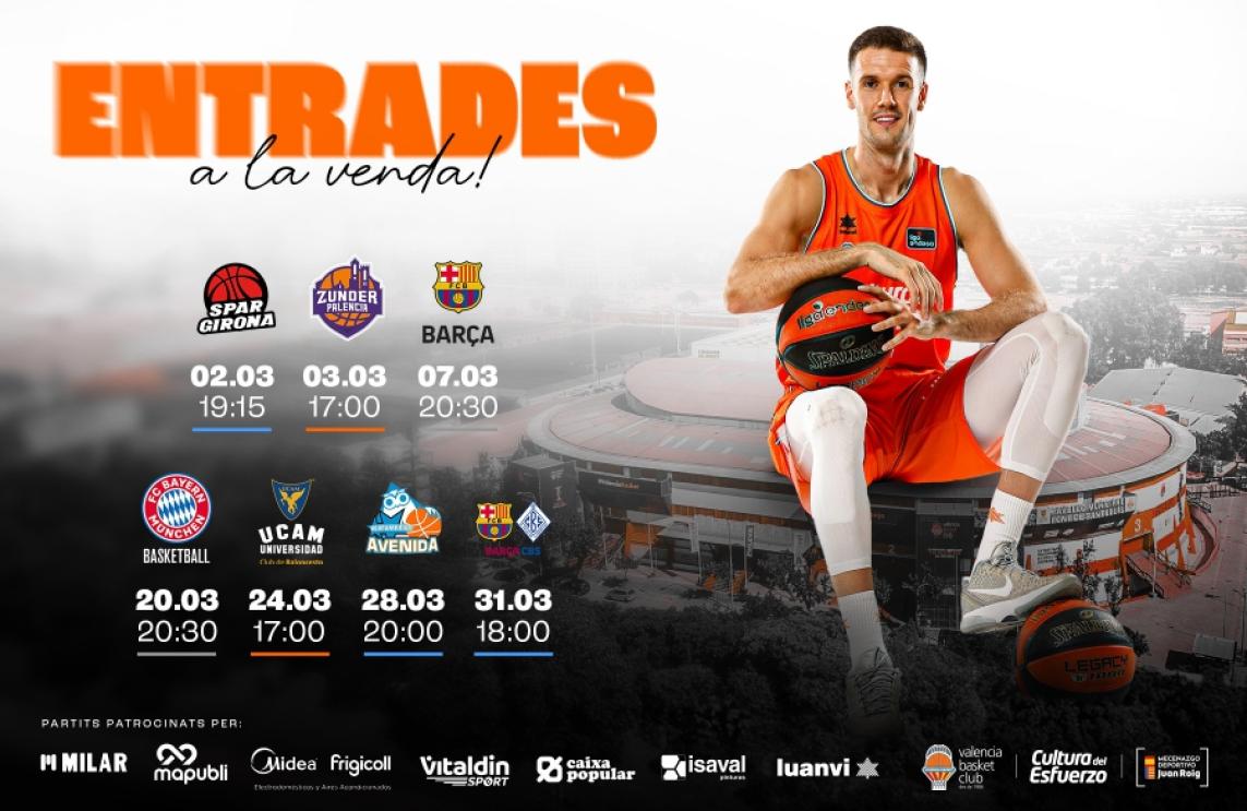 Valencia Basket will put on sale today at 6:00 p.m. a total of 7 new games, which will be available on the Club's website through this link: https://valenciabasket.koobin.com