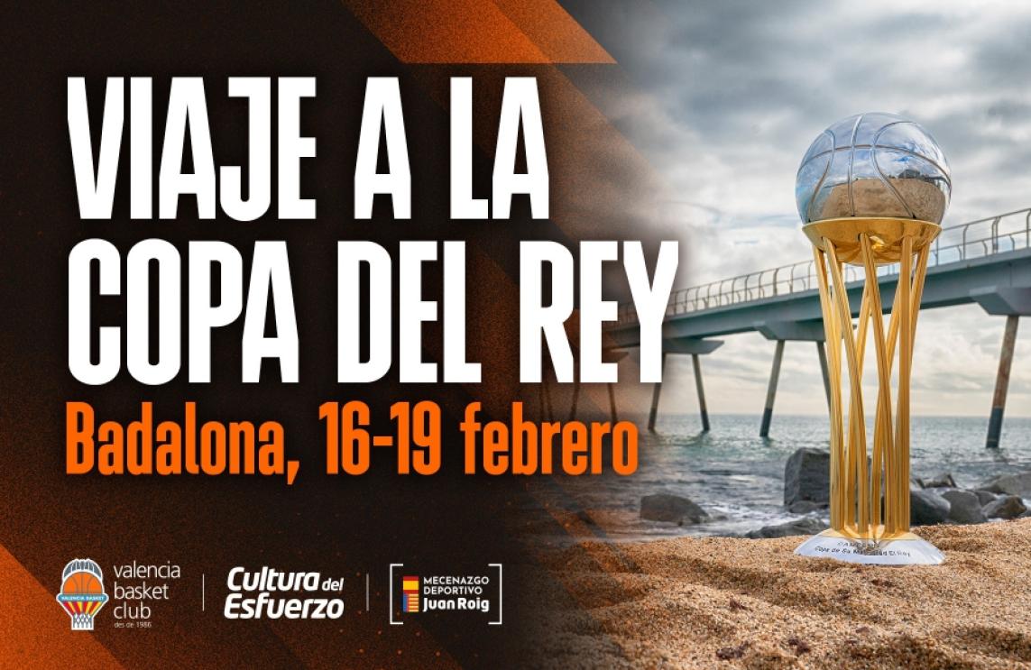 València Basket posa a la disposició dels aficionats que hagen adquirit el seu abonament per a animar a l'equip en la Copa del Rei que es disputa a Badalona, un nombre limitat d'opcions d'allotjament i trasllat en bus a la ciutat catalana.