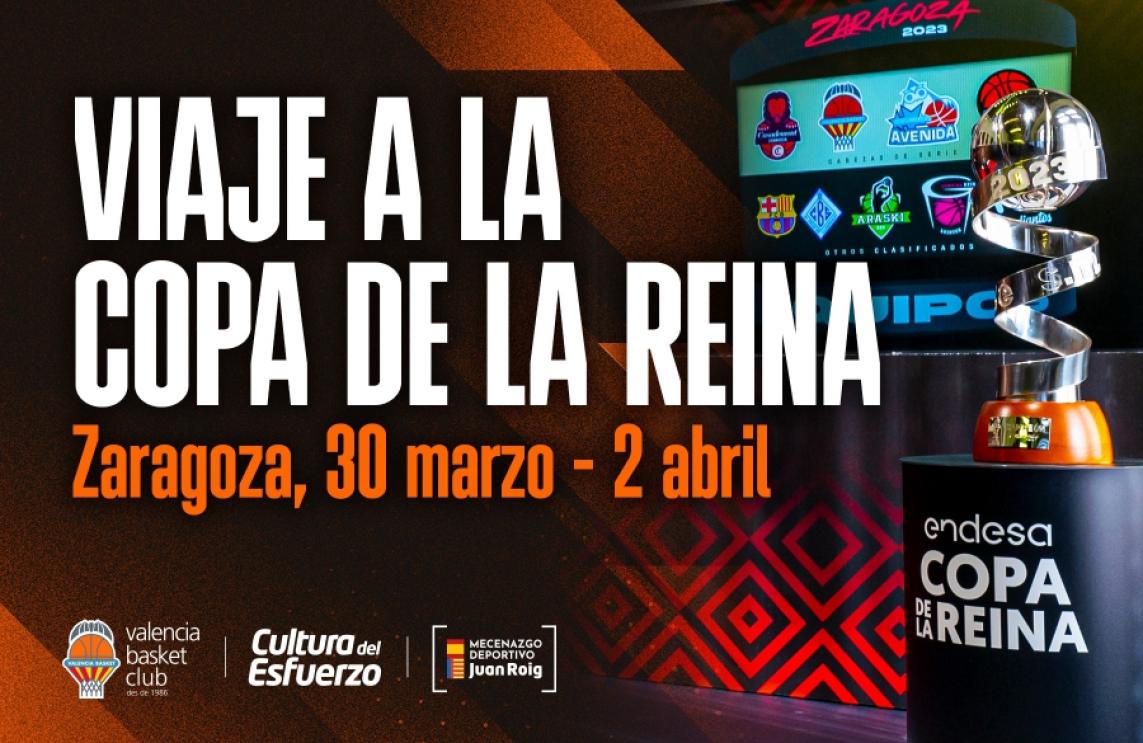 Valencia Basket pone a disposición de los aficionados que hayan adquirido su abono para animar al equipo femenino en la Copa de la Reina que se celebra en Zaragoza, la oportunidad de reservar alojamiento y traslado en autobús hasta la ciudad aragonesa.