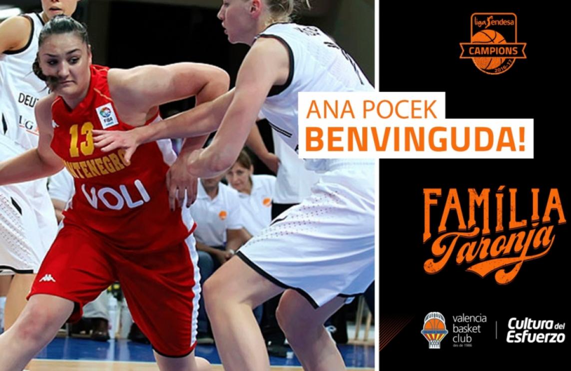 La jugadora Ana Pocek (Pívot, 1.87, 20/10/1993, 24 años. Niksic, Montenegro) se incorpora alsenior femenino de Valencia Basket hasta final de temporada para reforzar el juego interior del equipo de Rubén Burgos en Liga Femenina 2. La montenegrina, que jugó en Liga Femenina 1, ha jugado los últimos meses en el AEL Limassol de la liga chipriota.