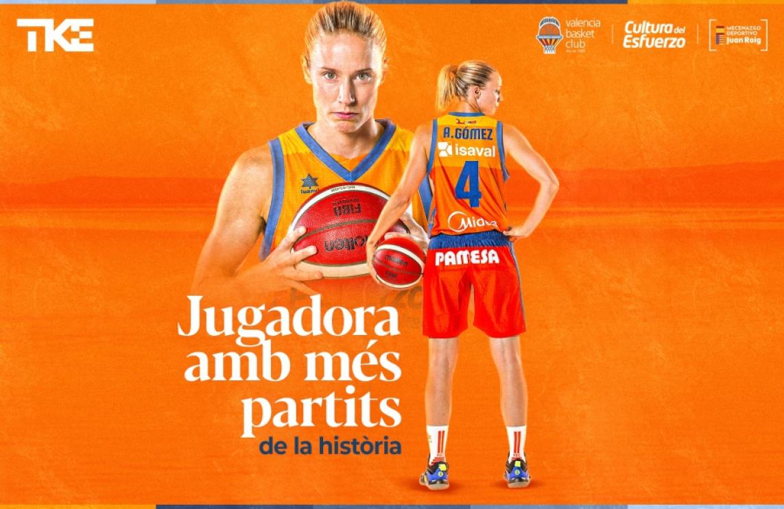 Amb la seua participació en el duel de la passada nit a Lugo, la capitana Anna Gómez ha igualat la xifra de 139 enfrontaments disputats per Rebeca Cotano, convertint-se d'aquesta manera en la jugadora amb més partits en la història de Valencia Basket.