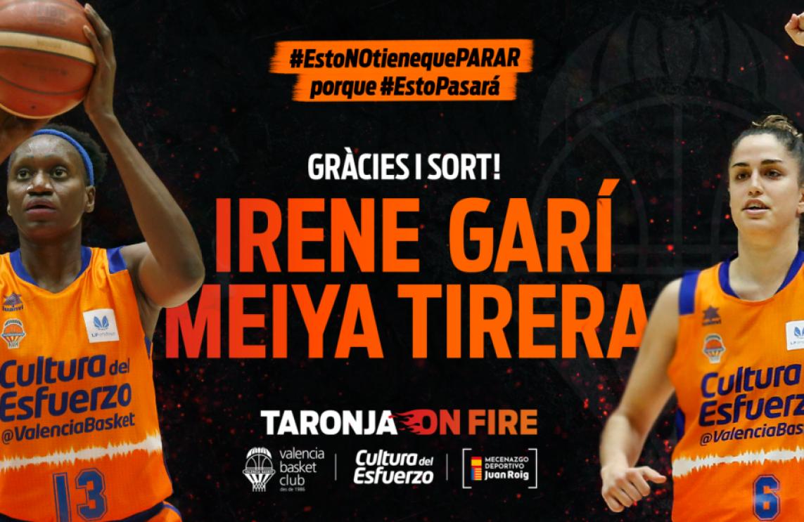 Valencia Basket wants to thank Irene Garí and Meiya Tirera, who after completing their contract will not continue next season, for their great professionalism and work during the three seasons they have completed in the club's first women's team, in which they have been an example of the values of the Culture of Effort and a reference for all members of L'Alqueria del Basket.
