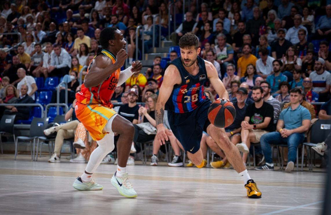 Valencia Basket lost the first game of their Endesa League quarterfinal series against Barça by 84-74 in a match in which, after an even first half, they could not hold the pull when a successful Mirotic found help of his classmates. On Friday at 9:00 p.m., Álex Mumbrú's men will have the support of La Fonteta so that the season does not end in the second game of this tie. The taronja team ran into the offensive success of Mirotic who first recovered the initial advantage that the taronja team got and then stretched the local lead to ten points in the second quarter, although the offensive appearance of Jones and Pradilla led to the reaction to leave with three down at intermission. A spark from Harper and Alexander put the orange box back on top at the start of the third quarter but Mirotic continued infallible from the triple and found the support of Satoransky and Abrines to shoot the local advantage. And although Valencia Basket pressed hard to not let go of the game, they couldn't get close enough to disturb the local victory.