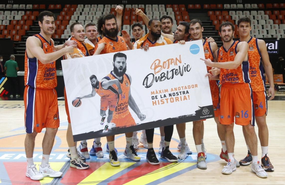 The captain of Valencia Basket, Bojan Dubljevic, managed last night to reach 5,593 points scored with the taronja jersey in a career of 465 games in our Club. A figure that makes him the all-time top scorer for our Club since last night. The Montenegrin center is honest to admit that “I really don't have words to express how proud I am, this means everything to me. Being the top scorer for a great club is something every player dreams of ”.