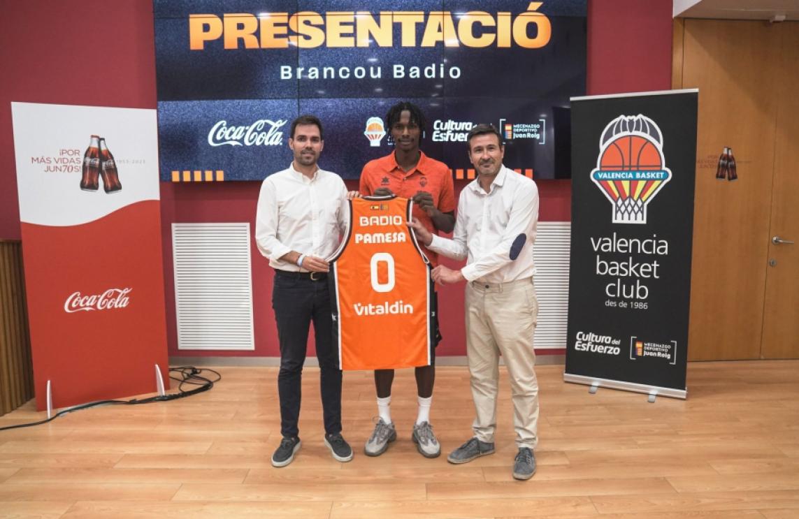 El escolta internacional senegalés Brancou Badio (1,91m, Rufisque, 17/02/1999, 25 años)ha sido presentado esta mañana como nuevo jugador de Valencia Basket para las tres próximas temporadas en un acto que ha tenido lugar en la fábrica de Coca-Cola situada en Quart de Poblet.