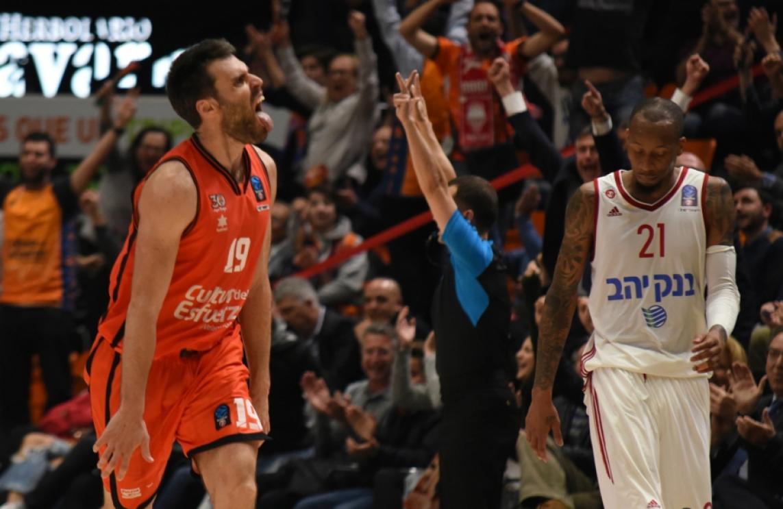 Dubljevic anotó los primeros cuatro puntos del equipo taronja en la segunda mitad y un triple en transición de Sastre colocó el 43-37 tras dos minutos de tercer cuarto. El conjunto taronja siguió apretando en defensa y aunque Amar’e Stoudemire hacía daño en el rebote ofensivo, Valencia Basket se puso diez arriba con un triple de Luke Sikma (47-37 min.24). Stoudemire asumió el protagonismo ofensivo y sacó a los suyos del atolladero con dos canastas seguidas. Hapoel bajó a cuatro, pero Rafa encontró a Will bajo el aro para romper el parcial. Con Sato en el banquillo sangrando por la nariz por un golpe de Kinsey, Peterson clavó el triple pero Valencia Basket aguantó su falta de acierto desde la defensa para volver a coger un poco de oxigeno con un mate tras robo de Will Thomas y dos tiros libres de Dubljevic para el +7. Una jugada colectiva que acabó con la cuarta falta de Peterson sobre Will Thomas, que anotó sus dos tiros libres, y una canasta de Kinsey sobre la bocina lo dejaban con 55-48 con diez minutos por jugar.