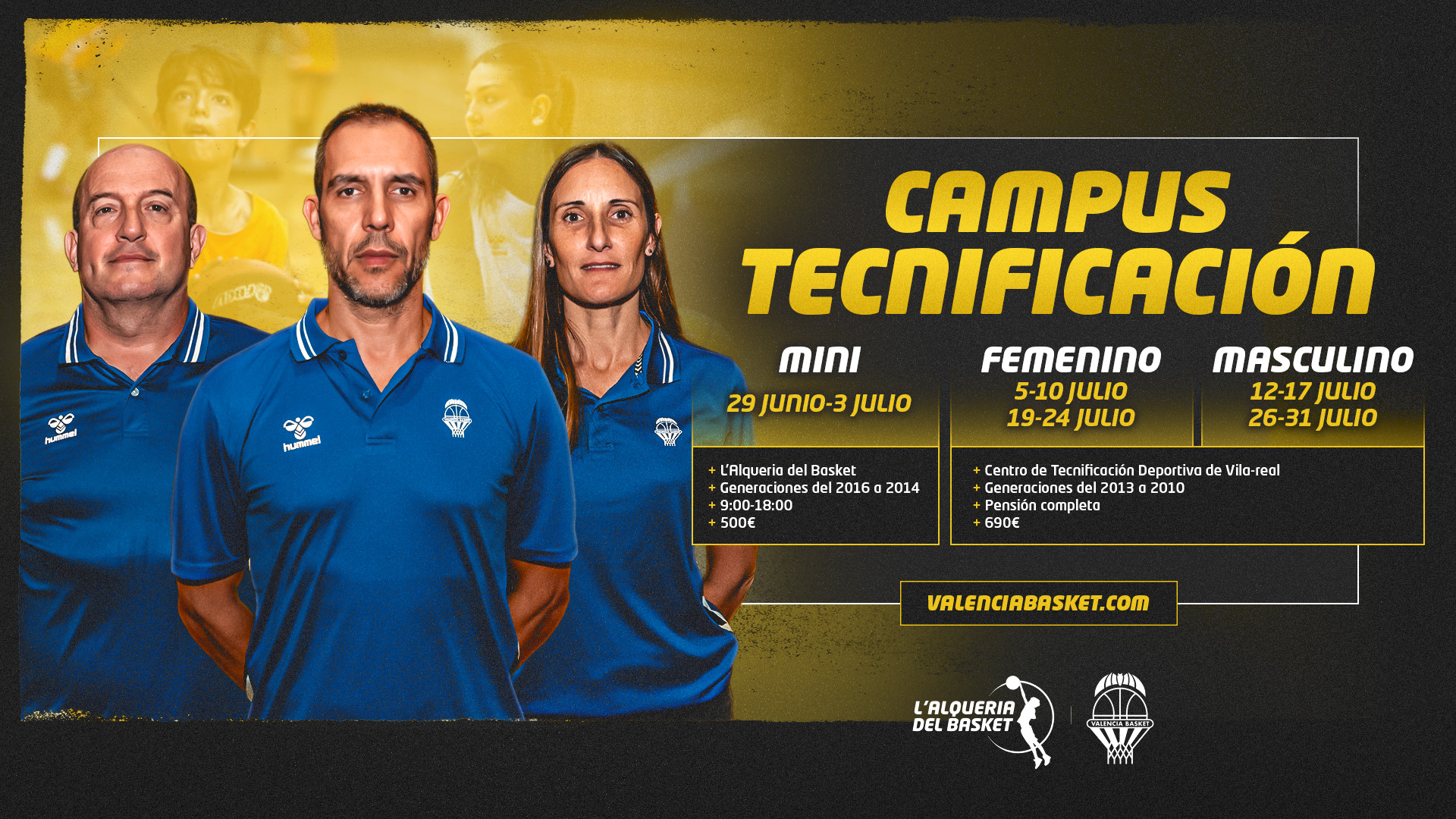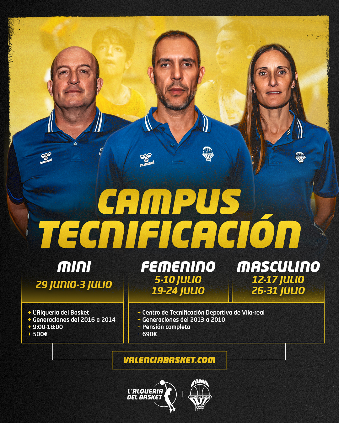 El Campus de Tecnificación Mini (2014-2016) tendrá lugar en L’Alqueria del Basket, mientras que el Femenino y el Masculino (2010-2013) se celebrarán en el Centro deTecnificación de Villarreal.