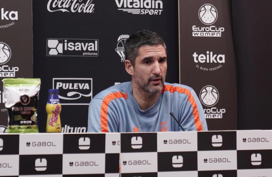 El técnico comenzó asegurando que sus jugadoras están “preparadas para el partido de vuelta. Ha estado bien que no tenemos jornada de liga intersemanal, por lo que nos da estos días para mejorar detalles puntuales e intentar mostrar algunas que no guardamos en el partido de ida, pero no teníamos del todo trabajadas, y podemos poner en práctica en el partido de vuelta. Éramos conscientes de que independientemente del marcador, el tópico de que la eliminatoria se decidía en la Fonteta era claro por la entidad del rival. Aunque la ventaja hubiera sido amplia, y cuatro puntos tal y como fue el partido son justos y buenos para nosotras, pero van a ser 40 minutos más duros contra un equipo experto, ambicioso y que tiene individualidades de máximo nivel. Ya en el propio partido su rotación fue corta, los minutos de descanso de Anderson, Thornton y Ndour fuero mínimos, y todavía esperamos menos aquí. El parcial nuestro fue precisamente cuando ellas estaban en el banquillo”.