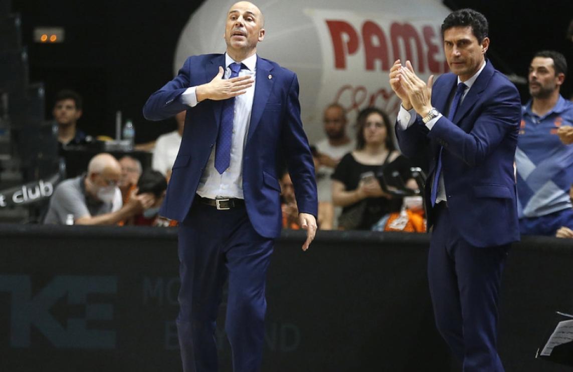 “Felicitar el Bitci Baskonia per la victòria i per la classificació a les semifinals. Un partit que se'ns ha torçat en la segona part, hem començat amb una molt bona intensitat, amb un molt bon ritme i amb l'ajuda de la Fonteta fent un molt bon bàsquet. En el segon quart perdem un poc l'avantatge amb ells carregant el rebot ofensiu i amb alguna pèrdua nostra en situacions de contraatac que això fa que no ens escapem en el marcador. I ve la jugada desafortunada de Martin i a partir d'ací tenim la sensació que canvia tot. Una segona part en la qual a l'inici el nostre nivell defensiu a l'inici és bo però se'ns nota amb un poc d'ansietat però juguem amb uns percentatges que estan molt lluny que puguem portar-nos la victòria. Un 6 de 19 en tirs de dos, un 2 de 13 en triples, un 4 de 12 en tirs lliures. Això per a guanyar a un equip com Baskonia és molt complicat. L'equip ha volgut però els últims quatre o cinc minuts no hem sabut continuar lluitant fins al final que és el que ha fet l'equip tot l'any. Un mal sabor de boca acabar un any tan complicat amb esta segona part però vull felicitar els xics per l'any, a tot el cos tècnic i felicitar la Fonteta, que vull donar-li un agraïment i és evident que ens hauria agradat acabar d'una altra manera”