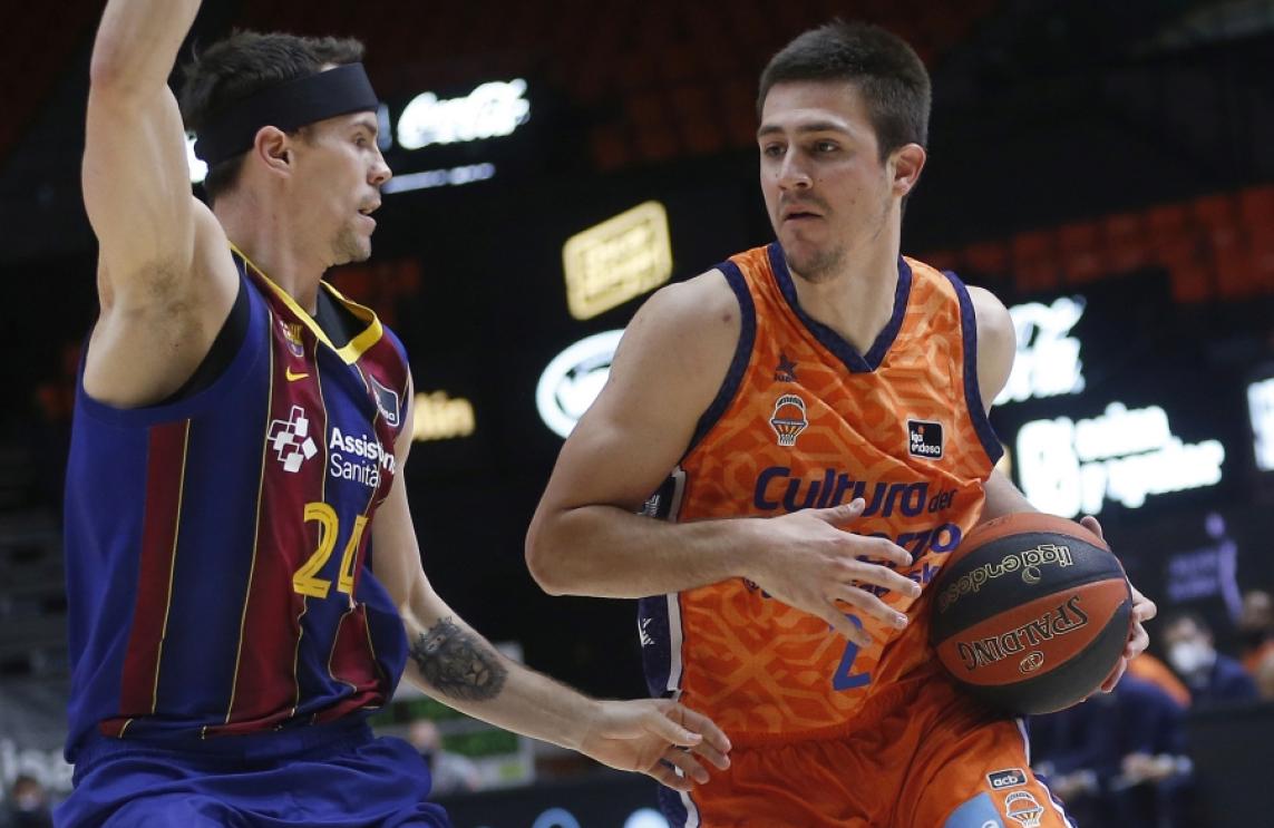 Valencia Basket va vore tallada la seua bona ratxa a la Fonteta en Liga Endesa tallada en caure derrotat davant el Barça per 64-80. L'equip taronja no es va soltar del partit i va tractar de recuperar el desavantatge que va començar a acumular en l'inici del segon quart però no va poder tornar a donar-li la volta al marcador degut en gran mida a l'encert de Abrines en l'últim acte. Els homes de Ponsarnau ho van lluitar malgrat no poder comptar amb Dubljevic ni Van Rossom per lesió i perdre durant el partit a Martin Hermannsson (lesionat a la cama dreta) i al qual estava sent el seu millor home, Mike Tobey (13 punts sense fallada i 5 rebots), per una altra lesió muscular.