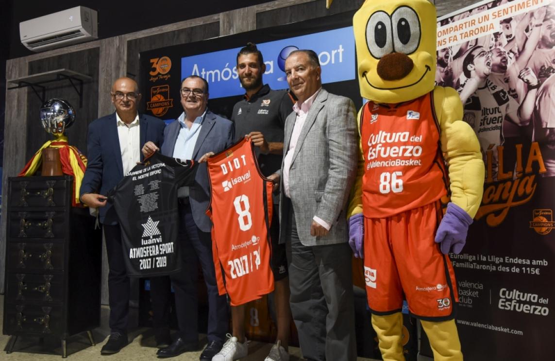 Valencia Basket y Antoine Diot presentaron esta mañana en sociedad el acuerdo de renovación por dos temporadas en las instalaciones de Atmósfera Sport en Silla. El base francés ha mencionado que “estoy muy contento de renovar aquí, me gusta todo, el, club, los aficionados, la comida, el sol, así que estoy muy contento, Valencia es mi familia”