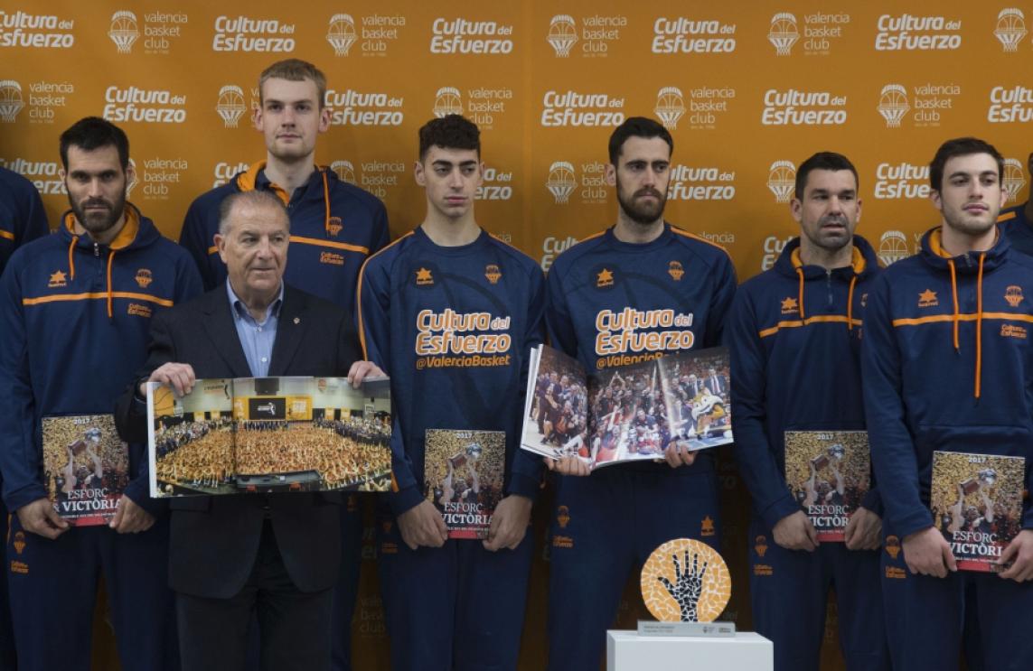 Valencia Basket has introduced this morning in the Fonteta Press Conference Room "Effort & Victory. 2017 or the memorable year of Valencia Basket ", the trilingual book edited and printed by the taronja Club in collaboration with Edicions ELCA and that makes a tour of the best year in the history of the entity. A 2017 in which two titles were lifted, all the possible finals were played and the starting signal was given to L'Alqueria del Basket. This book is already available in the Official Store of the Club at a price of 10 euros. An essential piece for any fan who wants to feel again the emotions of an unforgettable year.