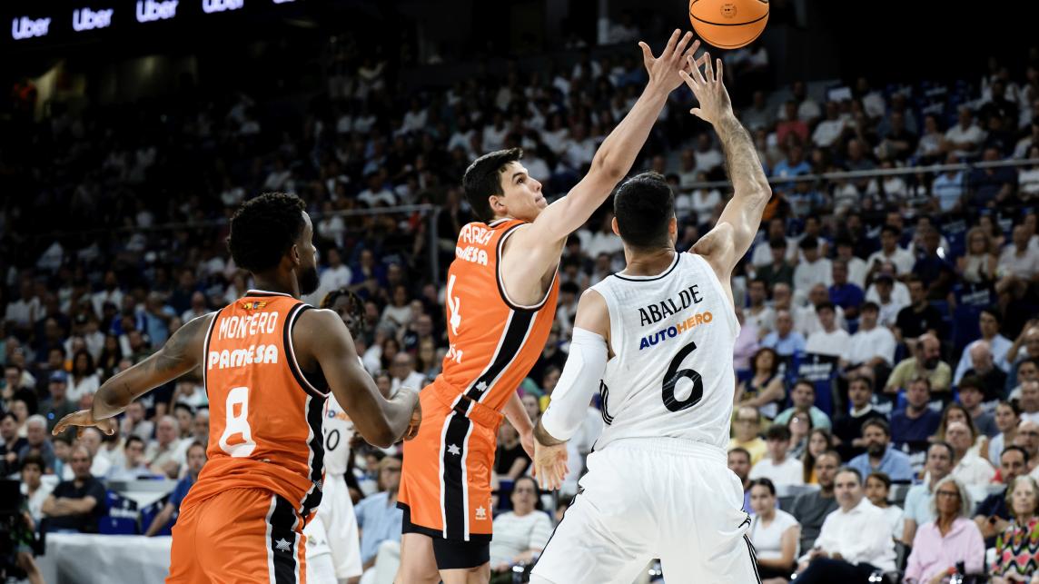 Aunque la segunda mitad comenzó con una canasta de Ndiaye, un 2+1 de Montero y un triple de Reuvers volvieron a poner por encima al cuadro taronja antes de que Campazzo le devolviera el acierto exterior. Brancou y Jones atacaron el aro con decisión para mantener el marcador equilibrado y aunque Campazzo asumió el protagonismo ofensivo de su equipo, cuando el cuadro taronja podía correr iba convirtiendo para poner el 59-58 al llegar a la mitad del tercer cuarto. Un balón colgado que Soriano convirtió en dos puntos provocaba otro cambio en el marcador, un triple de Jovic lo volvía a empatar pese a que el equipo blanco encadenó un par de aciertos y otro de Costello seguía cambiando el liderato en el marcador en un enconado intercambio de golpes que siguió con un palmeo de Xabi para llegar con 69-68 con diez minutos por jugar.