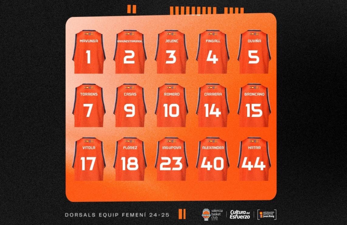 Las jugadoras del Valencia Basket ya han elegido sus dorsales para la temporada 24-25 con un elevado grado de continuidad entre las jugadoras que se mantienen del bloque que la temporada pasada consiguió el primer triplete en competición nacional de la historia de la entidad.