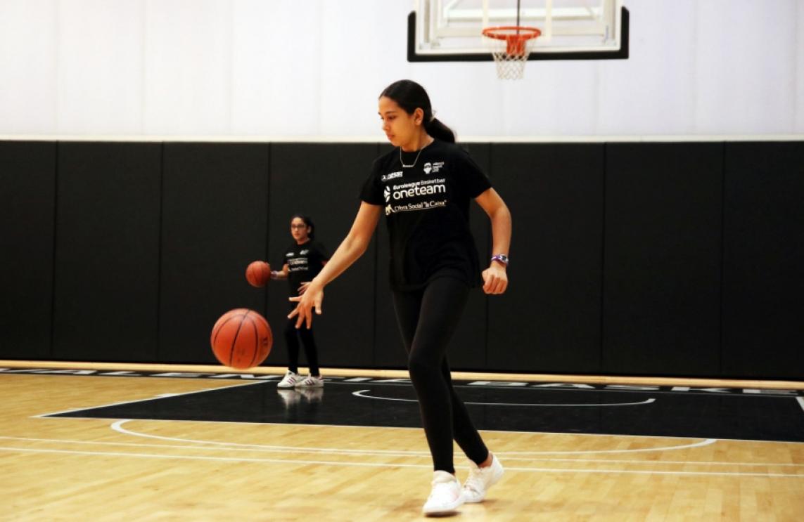 La segona jornada d'entrenaments de l'octau projecte de RSC One Team d'Eurolliga amb Valencia Basket va tindre com a objectiu treballar en equip, amb els integrants de la Fundació Maria Auxiliadora aprenent a col·laborar i a confiar en els seus companys per a completar distints exercicis en L’Alqueria del Basket.