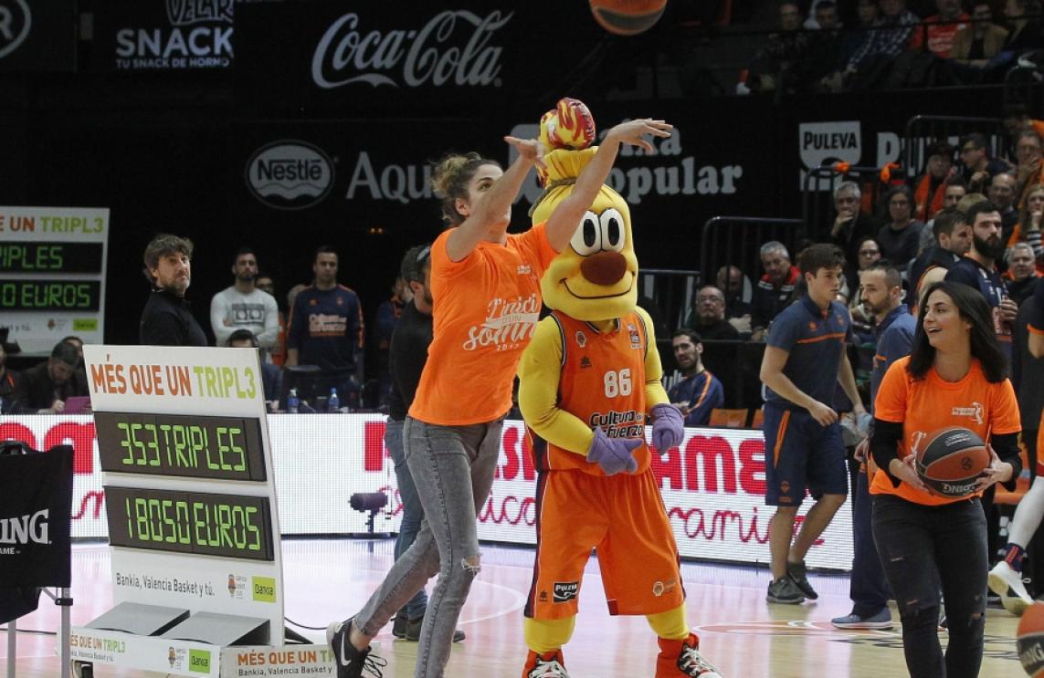 Desde hace cuatro temporadas, y dentro del programa ‘Més que un Triple’, el ‘Triple Solidario de Bankia’ convierte el acierto desde la línea de tres puntos en ayuda para la Fundación Valencia Basquet 2000.