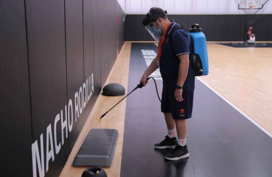 Perquè la primera plantilla masculina del Valencia Basket puga treballar cada dia des de fa tres setmanes sense cap risc i amb total seguretat, hi ha un element molt més important que comptar amb 13 pistes, una trentena de vestidors i tot el material individualitzat per als jugadors. Els realment imprescindibles són els empleats de L’Alqueria del Basket, que cada dia s'esforcen al màxim perquè tot el protocol es complisca de manera exhaustiva