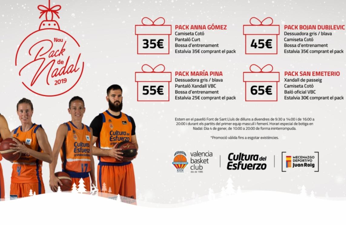Com ja és tradició quan arriben estes dates, Valencia Basket posa a la venda a partir del dissabte 30 de novembre a la nostra Botiga Oficial els packs de Nadal. Quatre interessants lots de productes oficials del nostre catàleg, amb noms de jugadors i jugadores de la nostra primera plantilla i amb un estalvi sobre el preu d'eixos articles per separat que arriba fins als 35 euros.