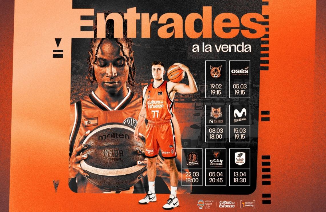 València Basket posa a la venda a les 18 hores de hui les entrades per a un total de 7 partits més a la Fonteta, inclòs el gran partit del pròxim 19 de febrer, l'anada de la semifinal del PlayIn de EuroLeague Women davant el CIMSA CBK Mersin turc. Estos partits se sumen als 3 que ja estaven a la venda. Es podran adquirir localitats per a eixes trobades en la web del Club a través d'este enllaç: https://valenciabasket.koobin.com/