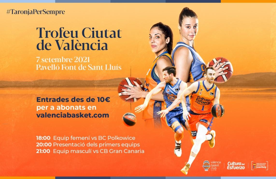 Ateses les mesures sanitàries recomanades per les autoritats pertinents, Valencia Basket posa a la venda a partir de hui divendres 03 de setembre a les 14h i de forma exclusivament en línia les entrades per al doble partit de presentació de les nostres plantilles professionals que tindrà lloc a la Fonteta el dimarts 7 de setembre. Les localitats estaran disponibles des d'un preu de 10 euros per a poder gaudir dels dos partits i dels habituals actes de presentació de cadascuna de les plantilles, a més de tots els equips de L’Alqueria del Basket. L'acció començarà a les 18:00 hores amb la primera edició del Trofeu Ciutat de València femení en el qual les xiques de Rubén Burgos s'enfrontaran al MKS Polkowice polonés. Després de les presentacions de tots els equips del Club, els jugadors de Joan Peñarroya s'enfrontaran al CB Gran Canaria en la XXVII edició del Trofeu Ciutat de València des de les 21:00 hores.