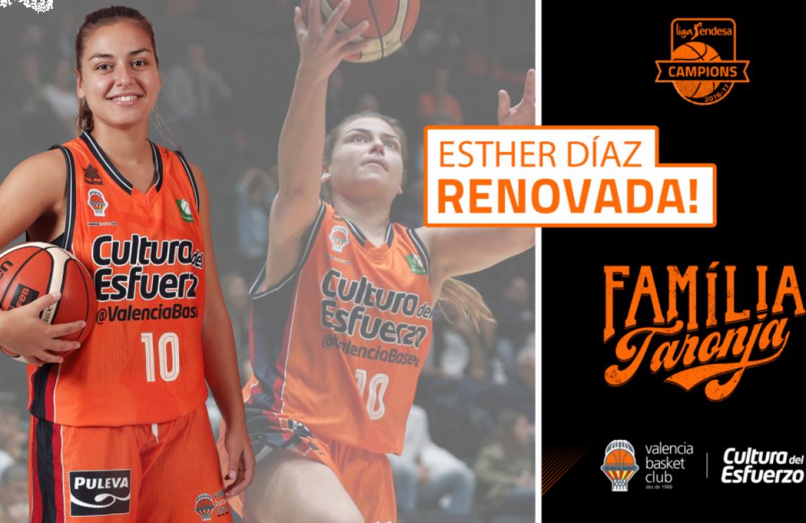 L'equip femení de València Basket continua avançant en el seu projecte per a afrontar la Lliga Dia la pròxima temporada. En este cas apostant per la continuïtat d'una de les jugadores que ha viscut totes les etapes de l'equip senior femení, Esther Díaz.