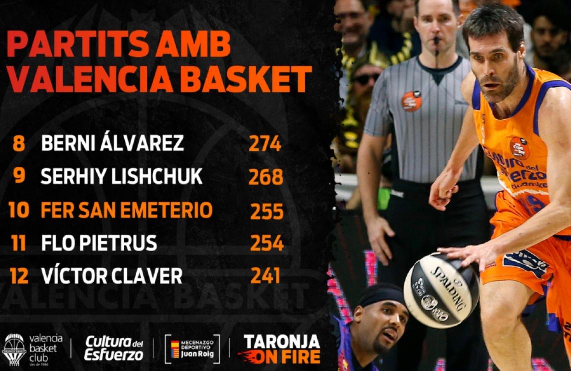 Fernando San Emeterio enters the Top 10 list of games played with Valencia Basket