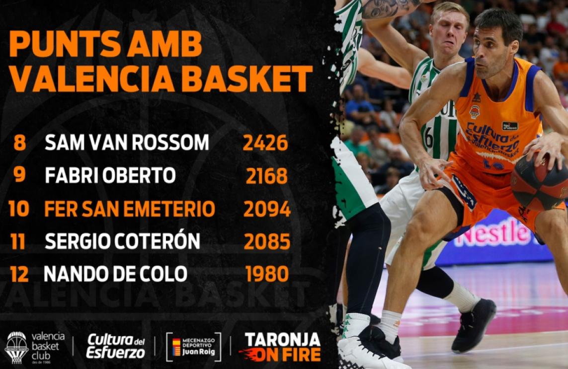 Fernando San Emeterio gets into the Top 10 Valencia Basket career scoring leaders list