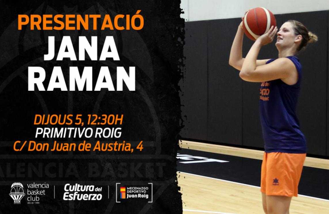 La jugadora belga Jana Raman (1.88m, Gante, 15/02/91, 28 anys) serà presentada com a jugadora del València Basket demà dijous 05 de setembre a les 12:30 hores en la clínica dental Primitivo Roig situada en el número 04 del Carrer Juan d'Àustria de València.