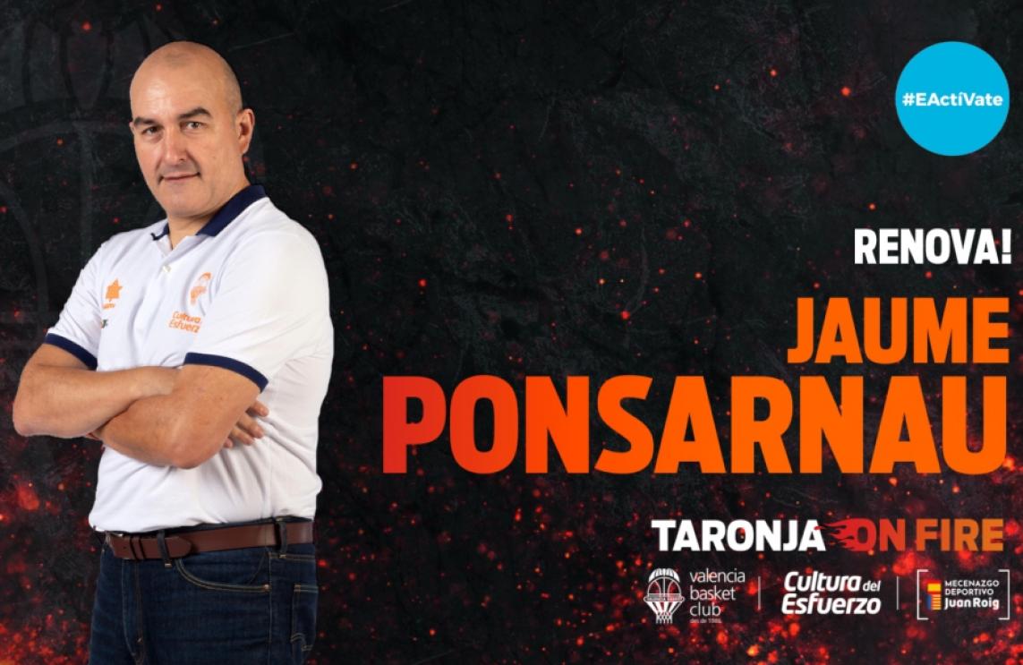 Jaume Ponsarnau y Valencia Basket han alcanzado un acuerdo para que el técnico catalán continúe siendo el entrenador de la primera plantilla masculina durante al menos una temporada más, hasta el 30 de junio de 2021.