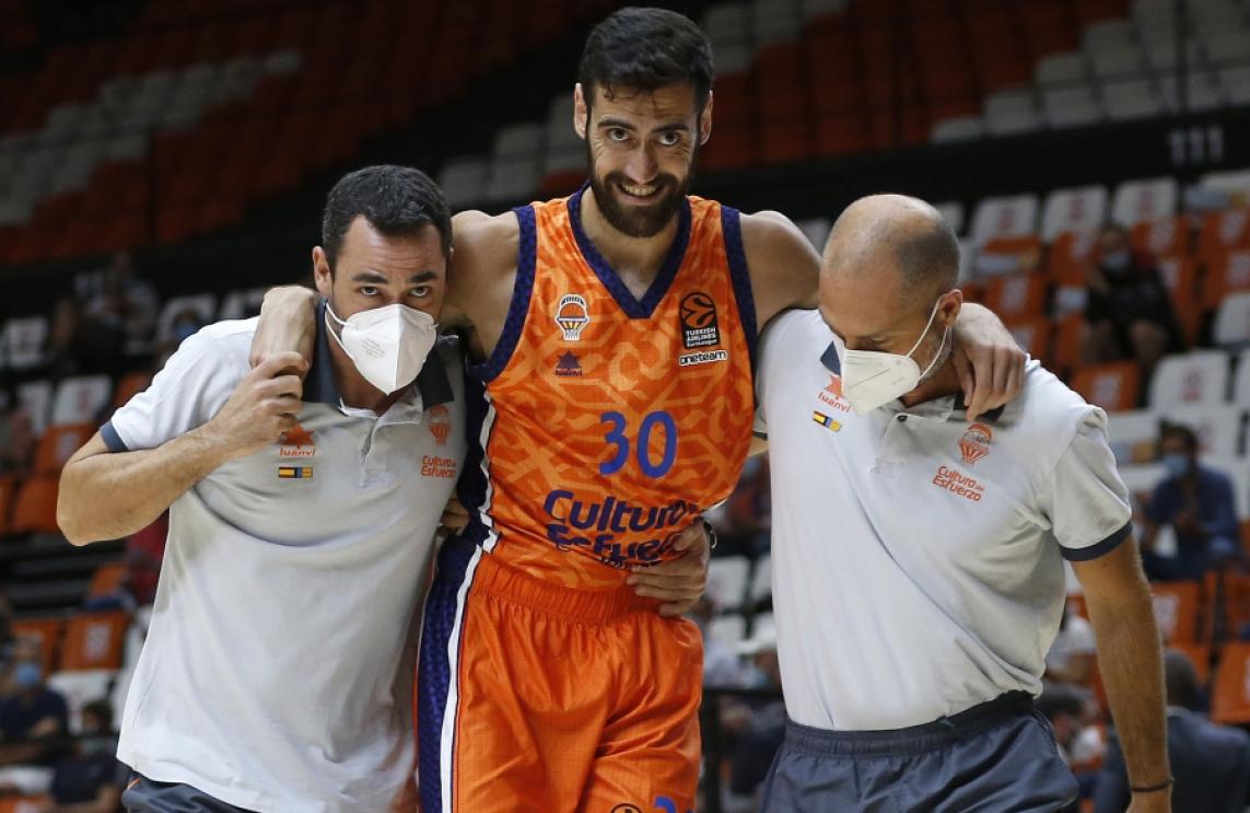 L'escorta de Valencia Basket Joan Sastre va haver d'abandonar el partit d'anit davant el LDLC ASVEL Villeurbanne en lesionar-se en el genoll dret en una de les últimes accions de l’encontre.