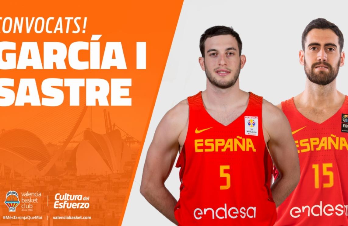 Los jugadores de Valencia Basket Joan Sastre y Sergi García han sido incluidos por el seleccionador nacional Sergio Scariolo en la lista de 16 jugadores convocados para representar a España en los partidos de la primera ‘ventana’ de la segunda fase de clasificación para la Copa del Mundo 2019. El equipo nacional absoluto se enfrentará a Ucrania en Kiev (viernes 14 de septiembre a las 18:00 horas) y a Letonia en Madrid (lunes 17 de septiembre a las 19:00 horas).