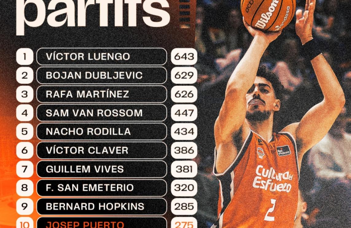 Josep Puerto enters the Top 10 for most games played with Valencia Basket.