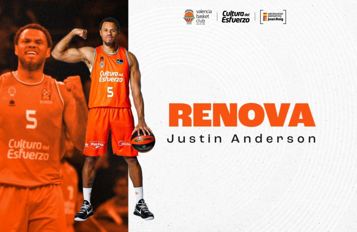 Justin Anderson extiende su contrato con Valencia Basket hasta final de temporada