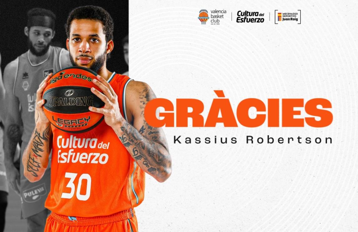 Valencia Basket ha executat la clàusula existent en el contracte de l'escorta canadenc amb passaport jamaicà Kassius Robertson per a rescindir el compromís que el Club tenia signat amb este jugador per a la temporada 2024-25, per la qual cosa Robertson queda desvinculat de l'entitat taronja.