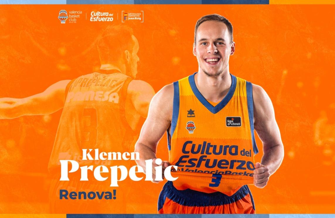 Valencia Basket ha executat l'opció que existia en el contracte de l'escorta eslové Klemen Prepelic (1.91m, Maribor (Eslovènia), 20/10/1992, 29 anys) per a allargar el seu vincle amb el Club per una temporada més, fins al 30 de juny de 2023. Prepelic començarà el pròxim curs la seua tercera temporada com taronja, després de ser el màxim anotador de l'equip en les dues últimes temporades, amb una mitjana de 12,6 punts en els 106 partits que ha disputat des de la seua arribada a València.