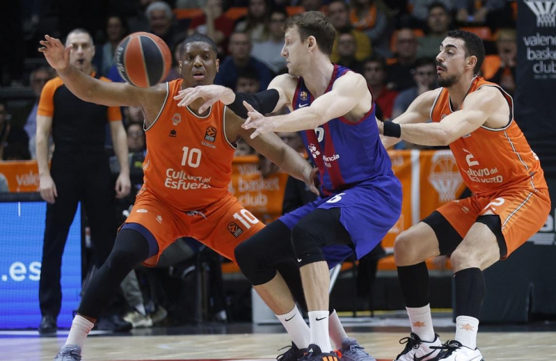 València Basket va caure a la Fonteta davant l'FC Barcelona per 78-88 en un partit en el qual després d'una bona primera meitat, es va veure per davall en el marcador després d'una mala eixida de tercer quart i després de sobreposar-se amb els punts de Jones (15 punts) i Ojeleye (19), va encaixar un parcial en l'inici de l'últim quart del qual ja no es va poder alçar malgrat que va lluitar fins al final per a intentar retallar el seu desavantatge. L'equip taronja es va recuperar de l'increïble encert des de la mitjana distància en l'inici de l’encontre del quadre català i a la seua falta d'eficàcia en els triples amb una tremenda energia en defensa i el rebot ofensiu i a no cometre pèrdues per a anar-se manant per cinc al descans. El conjunt blaugrana va eixir més agressiu després de l'intermedi i va provocar els errors del Valencia Basket per a tornar a posar-se per davant però Jones i Ojeleye van contindre el parcial per a entrar en els últims deu minuts amb tot per decidir. En els tres primers minuts de l'últim acte l'ofensiva blaugrana va disparar l'avantatge visitant per damunt de la desena i encara que Valencia Basket va tractar d'agarrar-se al partit des de darrere, Laprovittola i Vesely van defensar l'avantatge visitant perquè el triomf caigués de costat català.
