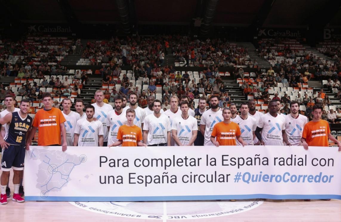 Tanto Valencia Basket como UCAM Murcia se involucraron en dar a conocer el proyecto de El Corredor Mediterráneo. Las camisetas de calentamiento, la foto de ambos equipos de forma conjunta, el tifo precio o la presencia de un singular tren tematizado ayudaron a la difusión. A esta iniciativa se unieron sectores del empresariado murciano como José García-Carrión, Marian Cascales y Rafael Fuertes.
