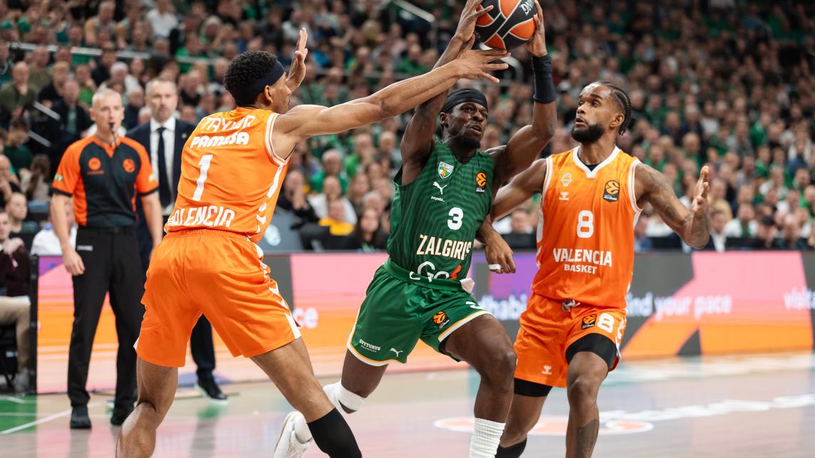Valencia Basket cortó su racha de victorias en la cancha del líder de la Euroliga Zalgiris Kaunas por 86-77 en un partido en el que se agarró una y otra vez al partido pese a las dificultades para anotar que le impuso su rival durante todo el encuentro e ir por detrás en el marcador la mayor parte del tiempo para llegar con opciones a los últimos minutos, donde el resultado se decantó de lado local. En la primera mitad, el equipo taronja se fue sobreponiendo a las dificultades que le ponía la defensa lituana para mantenerlo equilibrado desde atrás hasta que el Zalgiris encontró triples de sus tiradores para conseguir una pequeña ventaja en la mitad del segundo cuarto que Valencia Basket pudo reducir con la anotación de Montero y Costello para irse perdiendo por tres al descanso. Los hombres de Pedro Martínez se agarraban al partido tras el intermedio para incluso tomar el mando en algún momento con exiguas ventajas, aunque el cuadro lituano encontraba a sus tiradores en los momentos clave para entrar ganando en el último acto. Valencia Basket volvió a mantenerse pegado pese a un buen inicio del cuarto final de los locales pero a pesar de llegar con opciones a los últimos dos minutos, el cuadro lituano cerró el triunfo en la recta final.