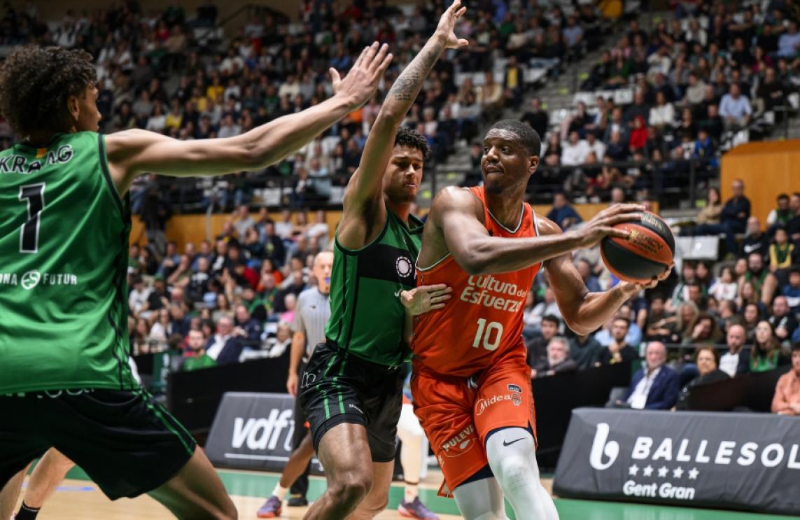 Valencia Basket va vore com es tallava la seua recta de triomfs en la Liga Endesa en la pista del Joventut Badalona (80-76) en caure davant l'encert de Thomas i Andrews i l'espenta dels joves de l'equip verd-i-negre en una vesprada en la qual li va faltar encert en el tir exterior en el moment clau per a intentar una remuntada a la qual es va acostar amb la seua estirada final. L'equip taronja va entrar fred al partit i es va quedar un poc gelat amb la lesió en el turmell esquerre de Chris Jones quan només s'havien consumit dos minuts. Això unit a l'encert en els triples de l'equip local va portar a Valencia Basket a vore's dotze a baix res més començar el segon quart amb un Thomas superlatiu però va reaccionar amb un parcial de 2-13 de la mà de Reuvers i Harper i li va donar la volta amb un altre parcial de 0-9 per a acabar la primera meitat i arribar al descans quatre a dalt. Ojeleye va contindre la reacció local després de l'intermedi però un moment ofensiu de Busquets va tornar a estirar la renda verd-i-negra i l'encert exterior de Thomas i Andrews li col·locava catorze a baix a sis minuts del final. L'equip taronja va pujar el llistó defensiu i va retallar fins a acostar-se a quatre, però no va trobar encert per a culminar la seua reacció.