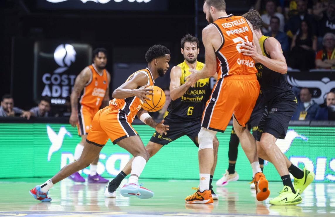 Los precedentes de este curso son hasta ahora favorables al conjunto taronja, que ha ganado en los cuatro enfrentamientos previos. Venció en la primera vuelta en la Fonteta por 96-81 en el partido de la primera vuelta disputado en la Fonteta el 13 de diciembre, aguantó el arreón final en el Santiago Martín en la jornada 33 para acabar ganando por 99-102 en un triunfo que a la postre fue decisivo para que el equipo taronja acabase segundo en la Fase Regular y esta serie esté comenzando en la Fonteta. Y se impuso tanto en el primer asalto de esta eliminatoria por 83-65 con dobles dígitos de Pradilla (14-10) y 16 puntos de Montero como en el segundo por 105-74 con 20 puntos del escolta dominicano y 12 de Costello y Sestina.