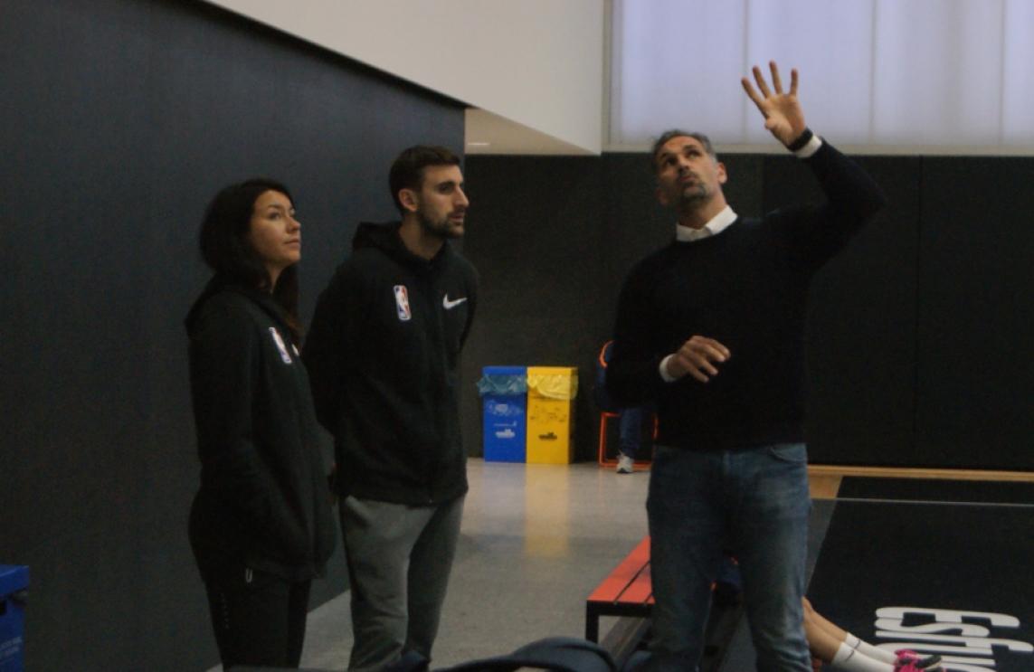 La NBA ha vuelto a aterrizar en la mayor instalación de cantera de Europa. A través de la NBA EMEA, orientada a todas las acciones de la competición americana que se desarrollan en nuestro continente, de nuevo dos emisarios de la mejor liga del mundo se han interesado por conocer L’Alqueria del Basket al detalle.