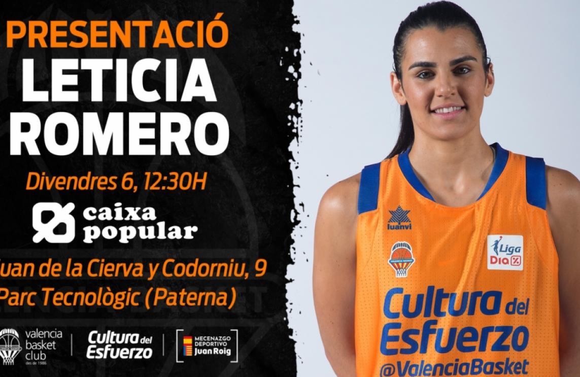 The Canarian player Leticia Romero (1.72, Agüimes, 05/28/95, 24 years old) will be presented as a Valencia Basket player tomorrow Friday September 6 at 12:30 pm at the headquarters of Caixa Popular, in the Technology Park of Paterna, Juan de la Cierva street and Codorniu number 9.