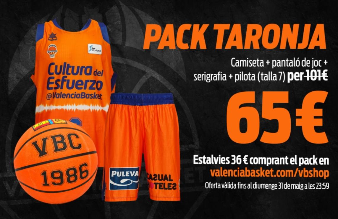 La tienda oficial del Valencia Basket no para de reinventarse, hoy presentamos una nueva promoción, ideal para los cumpleaños y las comuniones. Desde este momento, y hasta las 23:59h del domingo 31, puedes comprar la camiseta de juego, el pantalón de juego, la serigrafía completa y la pelota del club por sólo 65 euros, 36 euros de ahorro que comprando esos productos por separado.