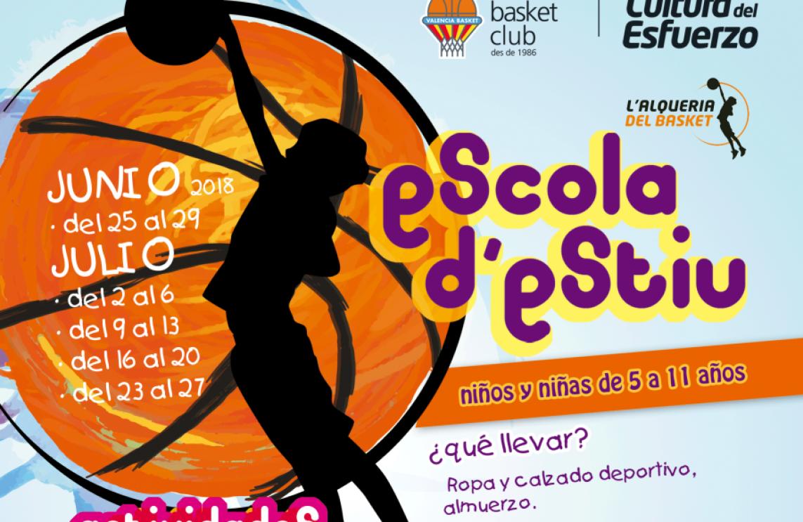 Valencia Basket presenta la tercera edición de l’Escola d’Estiu, una actividad destinada a niños de entre 5 y 12 años que se celebrará del 25 al 29 de junio y durante cada una de las cuatro semanas del mes de julio en el Sport Center Iale de L’Eliana. Además este año, como novedad, nace también l’Escola d’Estiu en L’Alqueria del Basket. Esta primera edición, en las mismas fechas, acogerá a niños y niñas de entre 5 y 11 años en la mayor instalación de baloncesto del continente. La inscripción para ambas actividades es muy flexible, sea por semanas, días sueltos, mañanas o días completos.