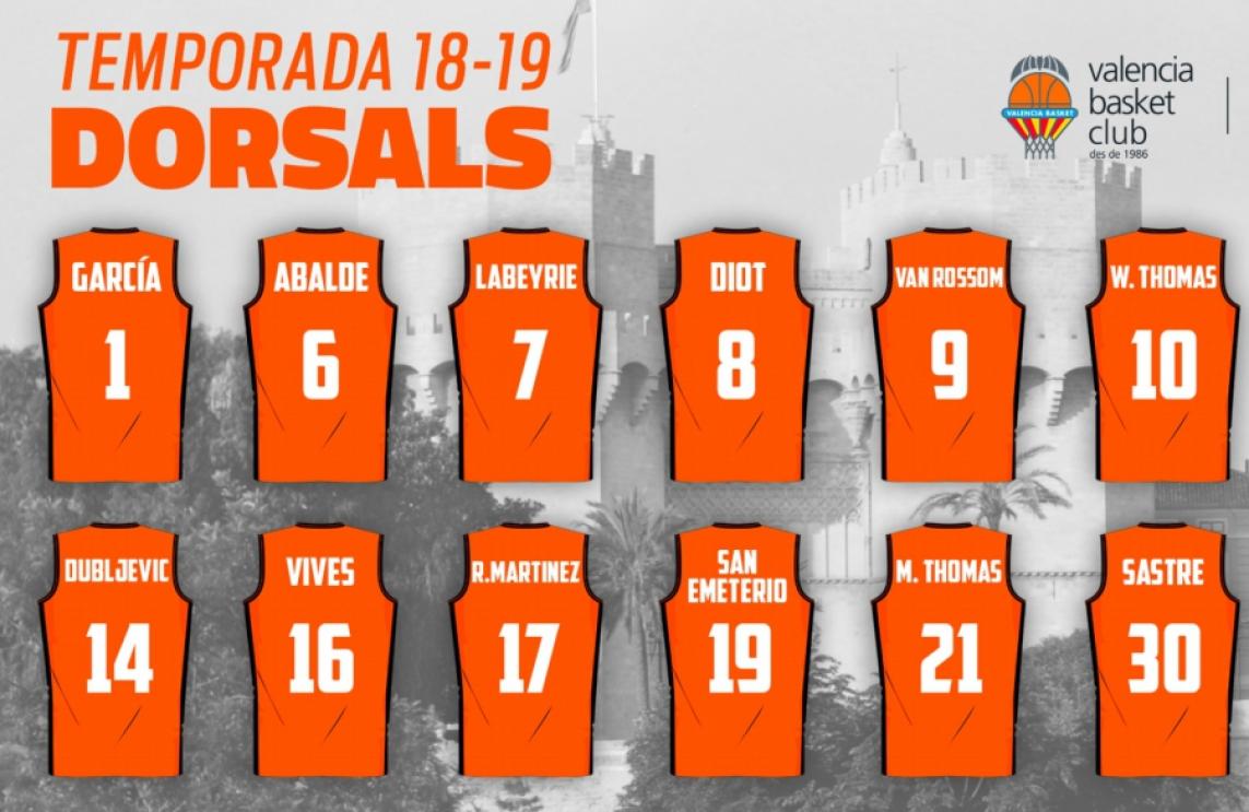 En el resto de la plantilla, se mantienen la mayoría de los dorsales utilizados por los jugadores la pasada campaña. Rafa Martínez defenderá el #17 por undécima temporada consecutiva y Bojan Dubljevic lucirá el #14 en su séptimo curso como taronja, lo que le convierte en el extranjero con más temporadas de la historia del Club.